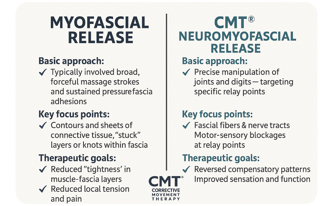 CMT™ bridges somatic, neurological, and fascial systems in a functional model. It's a practical method grounded in direct physical mapping, not speculative modalities.